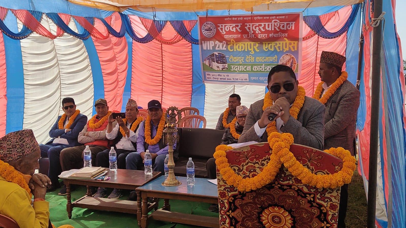 टीकापुर,१४ मंसिर । सुदूरपश्चिम प्रदेशको यातायात सेवालाई आधुनिक, सुरक्षित र यात्रु–मैत्री बनाउन सुन्दर सुदूरपश्चिम यातायात प्रा. लि. द्वारा संचालित VIP 2×2 टीकापुर एक्सप्रेस बस सेवा आइतबार एक विशेष समारोहका बीच औपचारिक रूपमा उद्घाटन गरिएको छ।